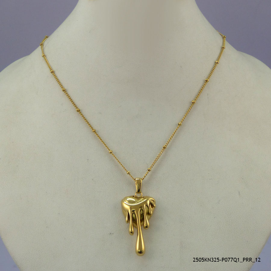 This Necklace is 14K Gold Plated with base metal of steel. The length of the necklace is 16-18inch. These FASHION JEWELLERIES don’t come with WARRANTY but are good for DRESS WEAR purpose.