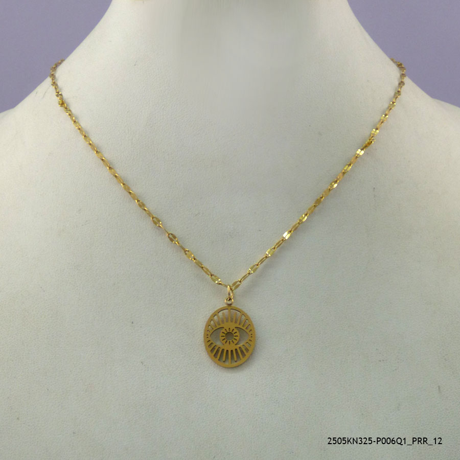 14KGP EVIL EYE STEEL NECKLACE
