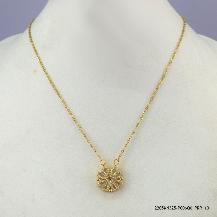14KGP HEART CRYSTAL STEEL NECKLACE