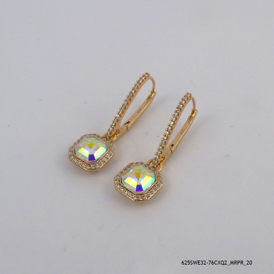 CompareThis pair of Earring is 18K Gold Plated with base metal of copper with Australian crystal. The Length of earring is 3.5cm.