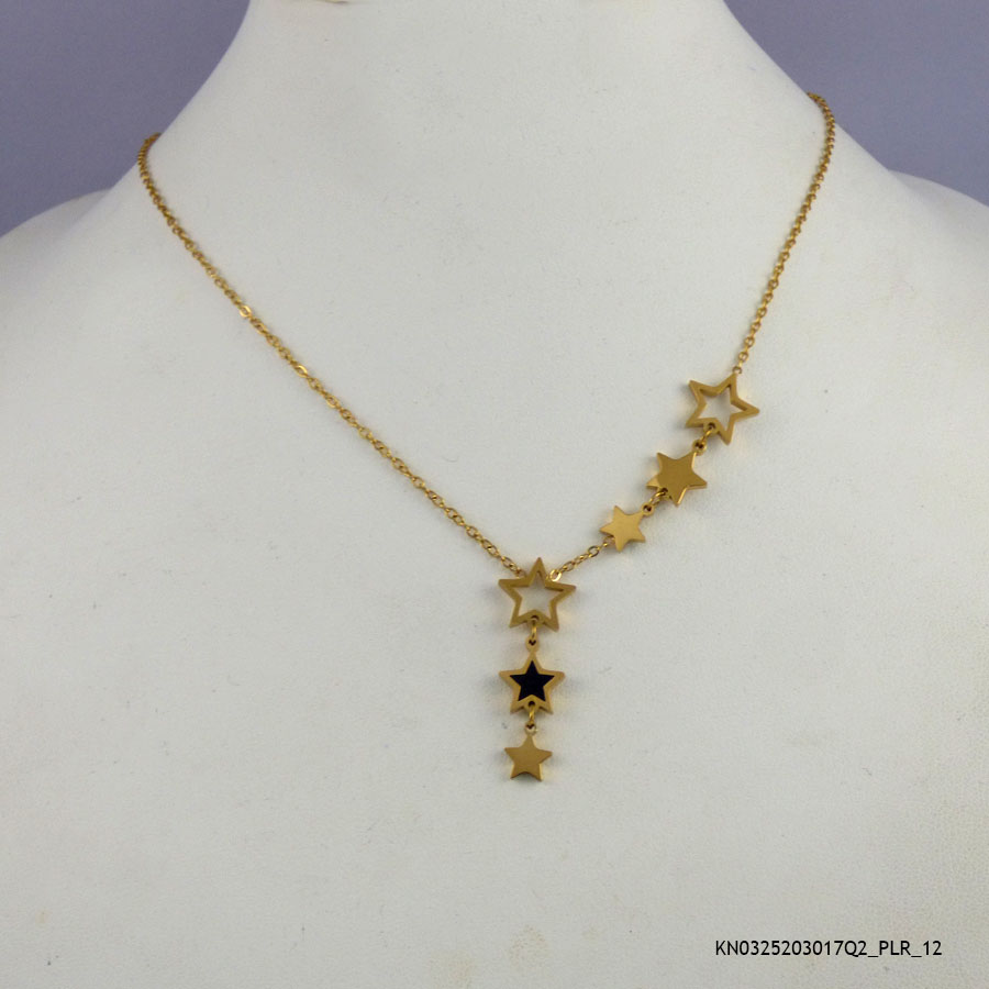 This steel necklace is 18K Gold Plated . Its base metal is steel. The length of necklace is 16-18inches.