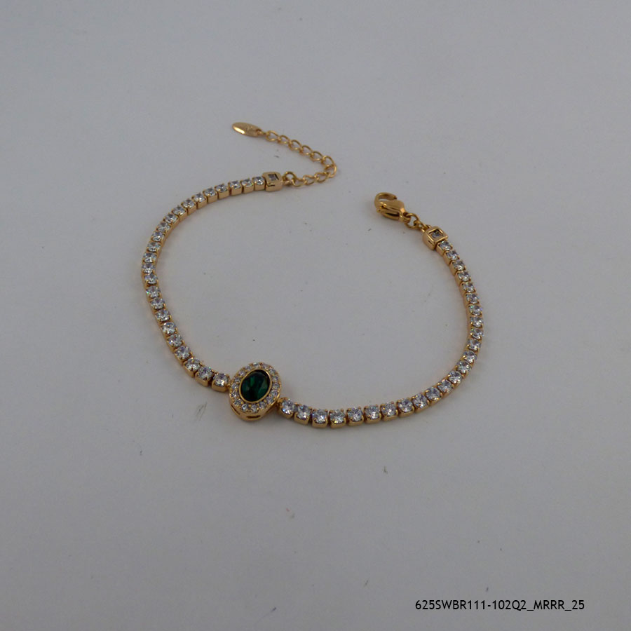 This bracelet is 18K Gold Plated with synthetic crystals. Its base metal is copper. The length of bracelet is 17+3cm.