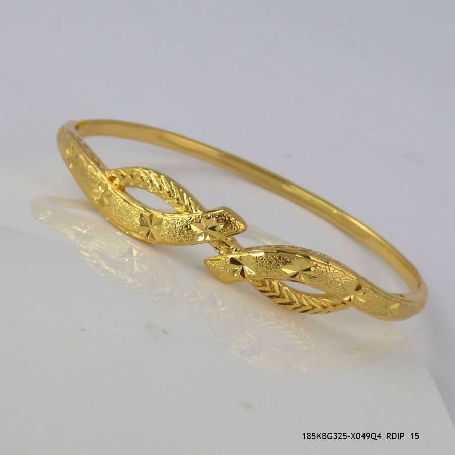 This BANGLES is 24K Gold Plated with base metal of copper. The length of bracelet is 6cm adj. These FASHION JEWELLERIES don’t come with WARRANTY but are good for DRESS WEAR purpose.