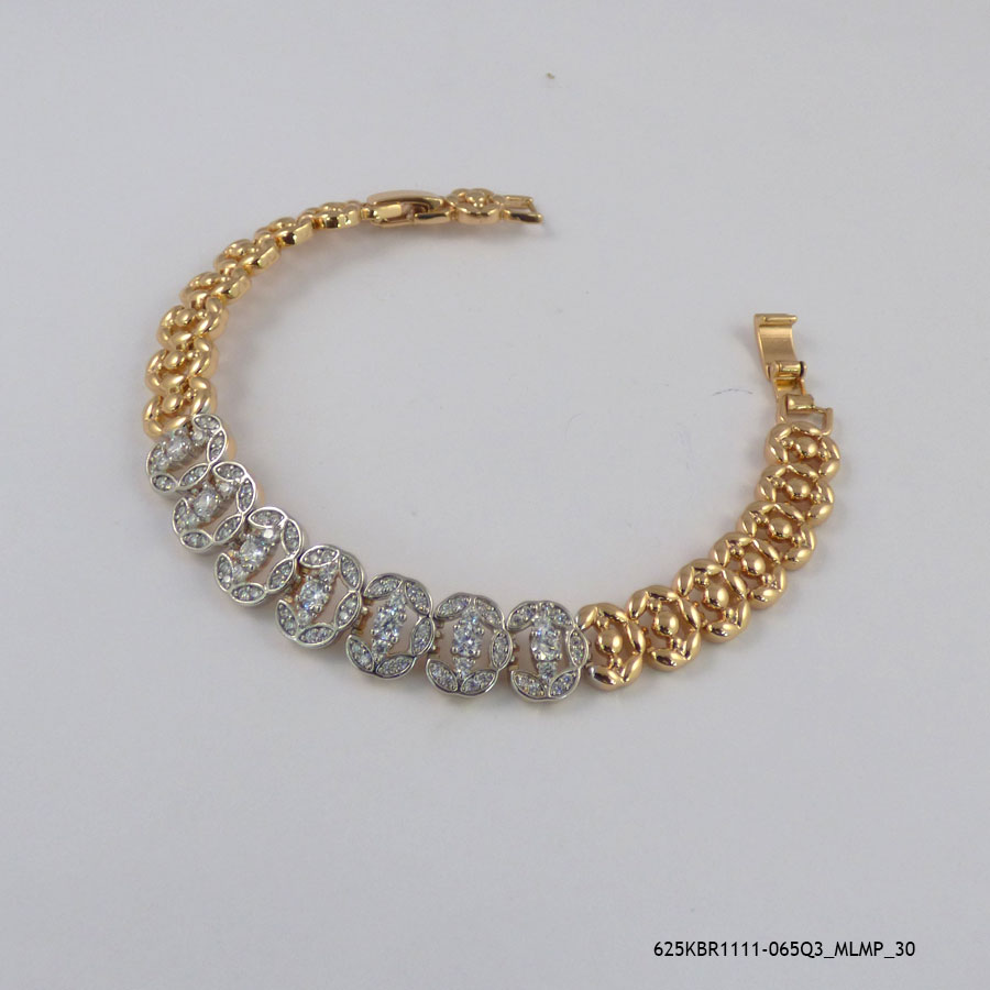 CompareThis bracelet is 18K Gold Plated with synthetic crystals. Its base metal is copper. The length of bracelet is 17cm.