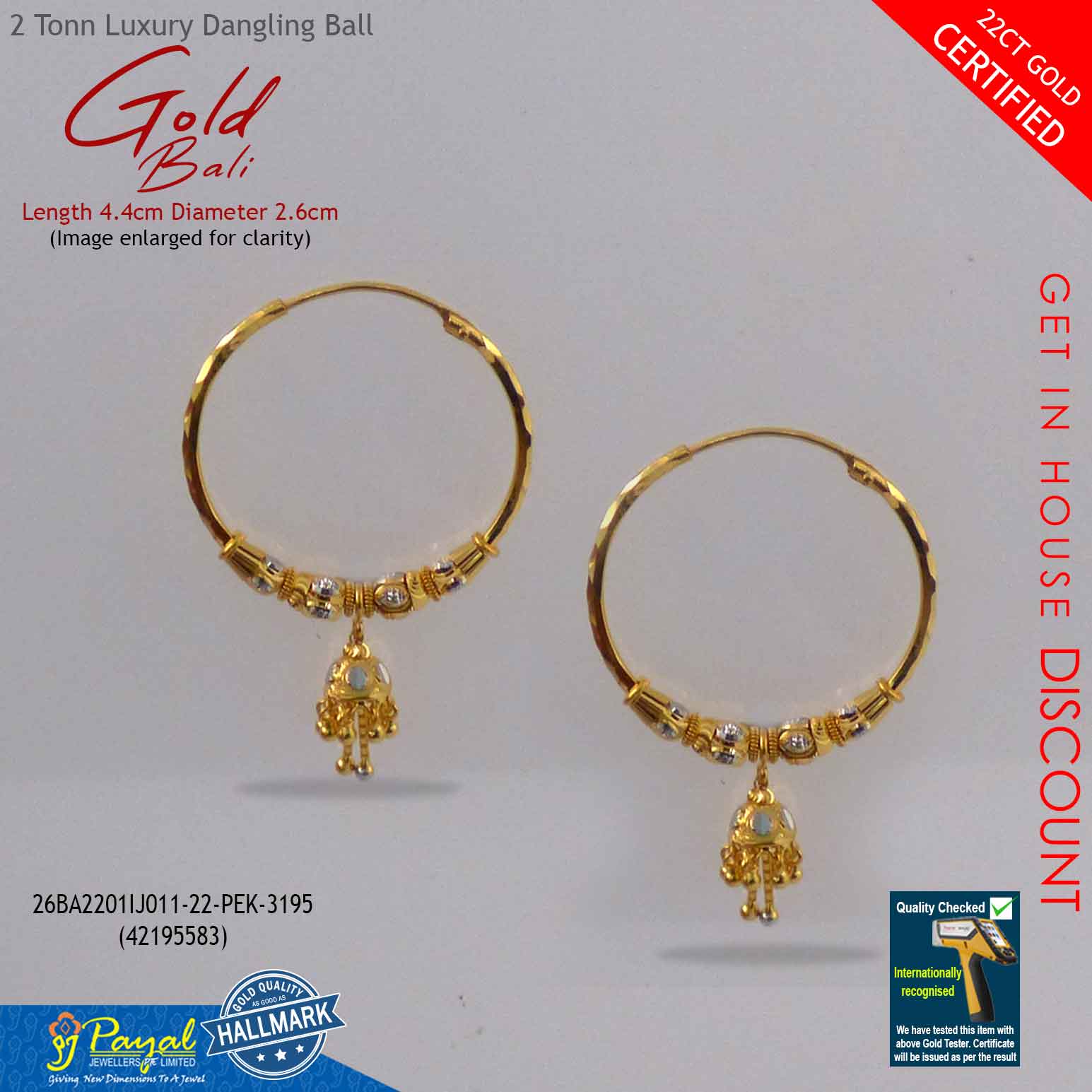 Our exquisite pair of Bali earrings; crafted from 22ct Gold (916). Weighing in at 5.95grams with a Length 4.4cm Diameter 2.6cm; these bali earring are a stunning addition to any jewelry collection.