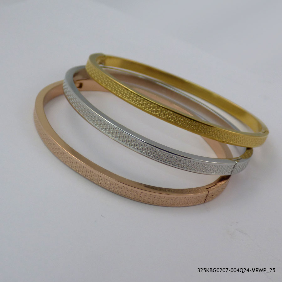 This bangle features a combination of Gold-Rose Gold and Platinum plating; with a base metal of copper. The bangle has a 6cm diameter and is adjustable. While these fashion jewelry pieces do not include a warranty; they are suitable for dress wear. At Payal Jewellers Pte Ltd; we are committed to setting fashion trends. Each of our selections is designed to be distinctive and unique.