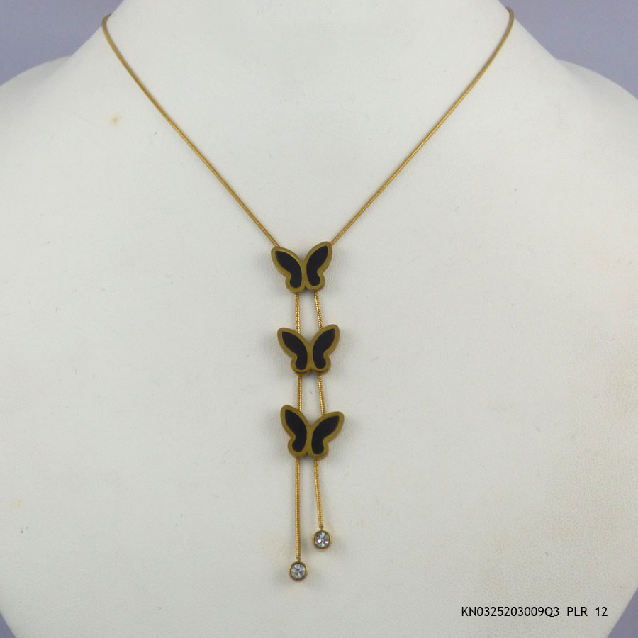This steel necklace 18K Gold Plated . Its base metal is steel. The length of necklace is 16-18inches.