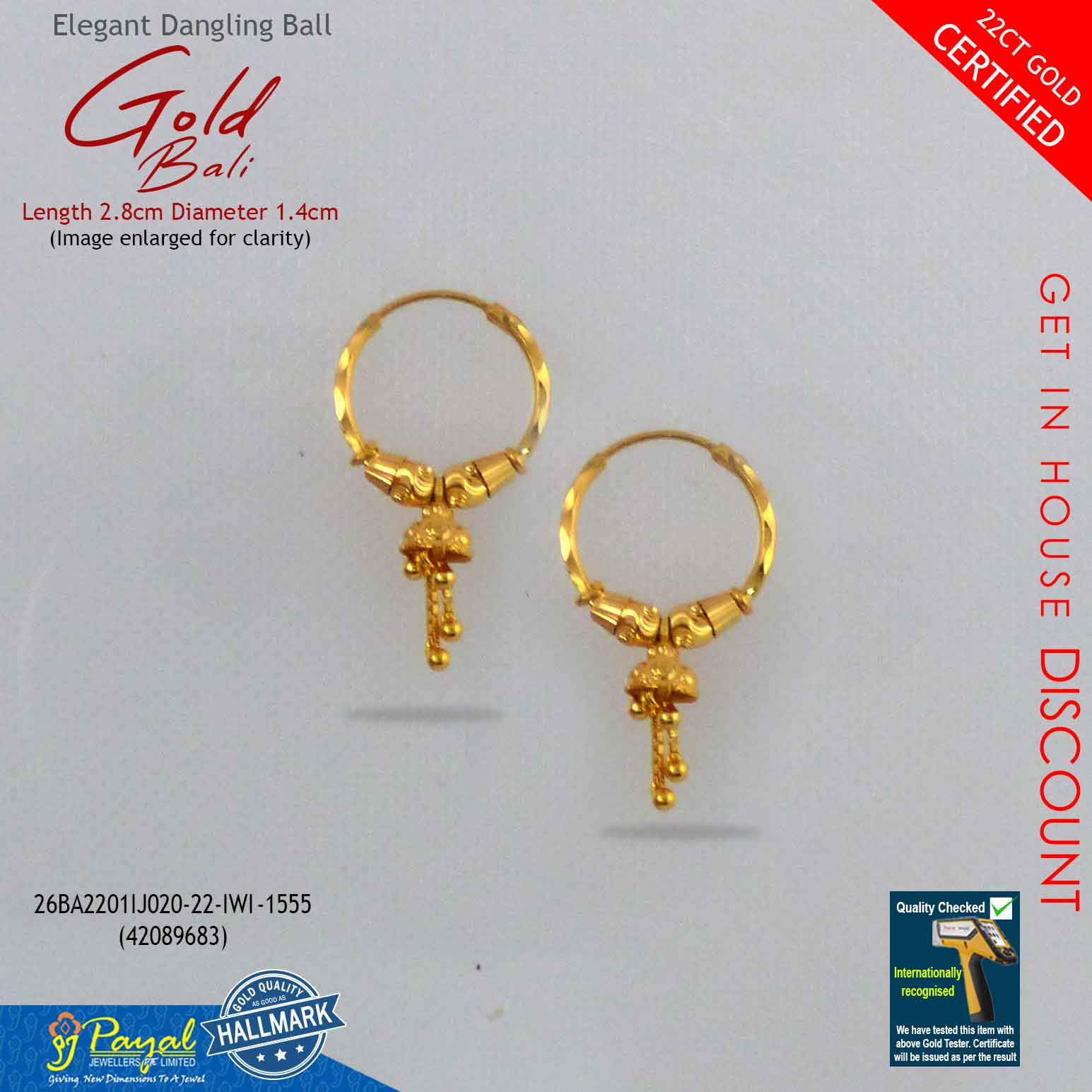 All of our gold jewelry undergoes rigorous in-house testing; and a certificate is issued accordingly. This commitment to quality is why we proudly stand by our hallmark standard.
