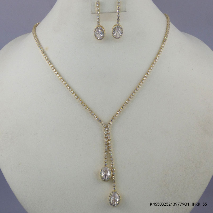This Fashion Necklace set is 14K Gold Plated with Syn Crystal(Earring Length 2.5cm) . Its base metal is cooper. The length of necklace is 14-16inches.