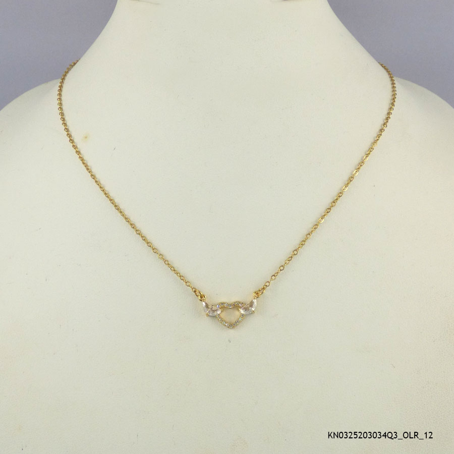This steel necklace is 14K Gold Plated with Syn Crystal. Its base metal is steel. The length of necklace is 16-18inches.