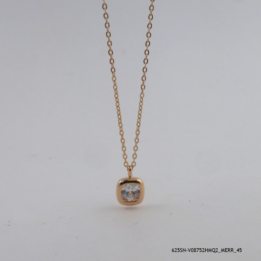 This 925 Sterling Silver Necklace has Rose Gold Plating with zircon Stones .