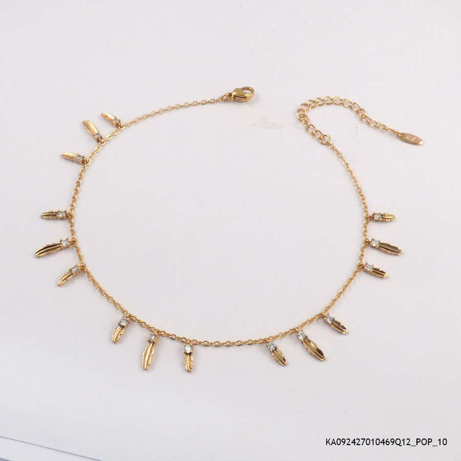 This anklet is 18K Gold Plated with Synthetic Stone . Its base metal is copper. The length of anklet is 23-26cm.