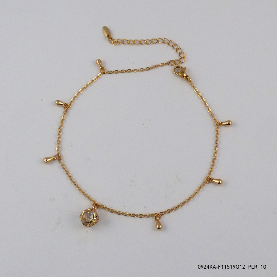 This Anklet is 18K Gold Plated with synthetic crystals. Its base metal is copper. The length of anklet is 24/26cm. These FASHION JEWELLERIES don’t come with WARRANTY but are good for DRESS WEAR purpose.