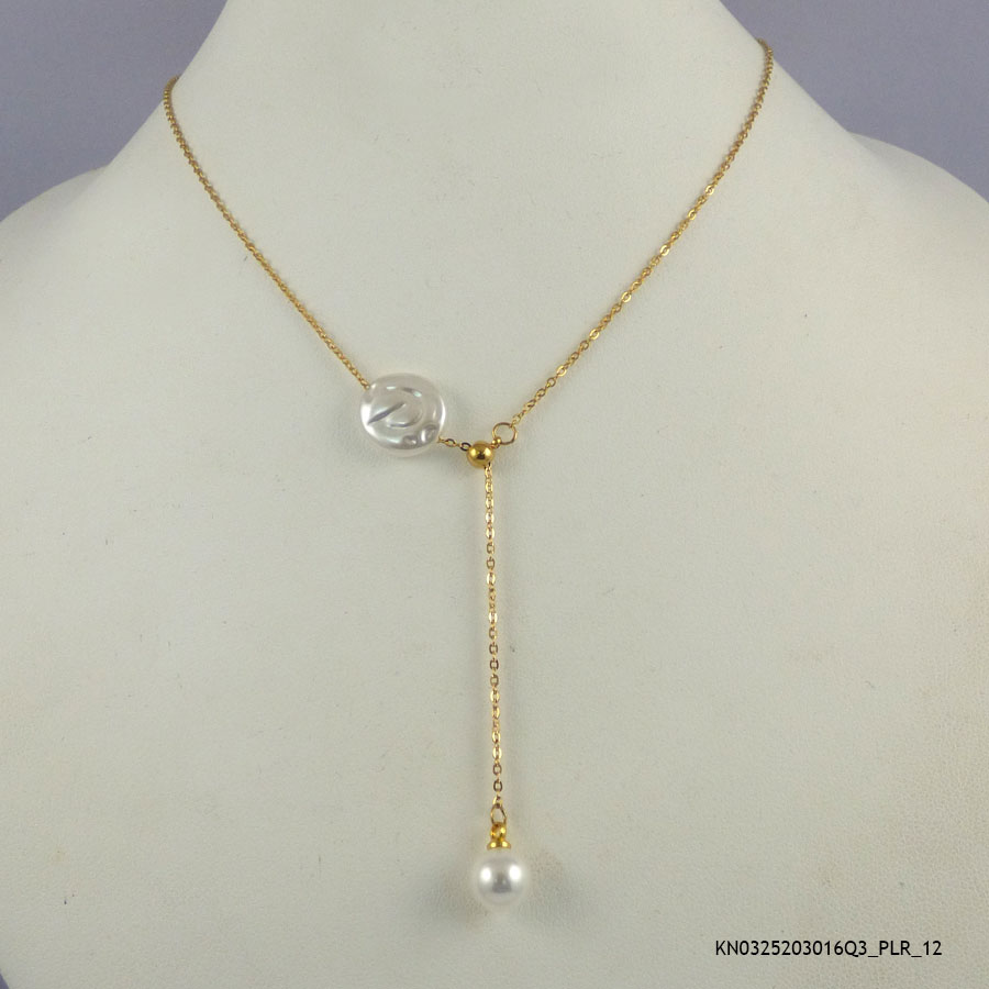 CompareThis steel necklace is Gold Plated with syn pearl. Its base metal is steel. The length of necklace is 16-18inches.